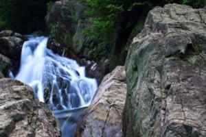 茶人谷卧双桥镇狭门水库之上,境内大潭岗,号东海第四峰,岗上植茶千亩,谷因名之。山高、谷邃、溪长、瀑飞、林幽、岩危,乃茶人谷六奇...